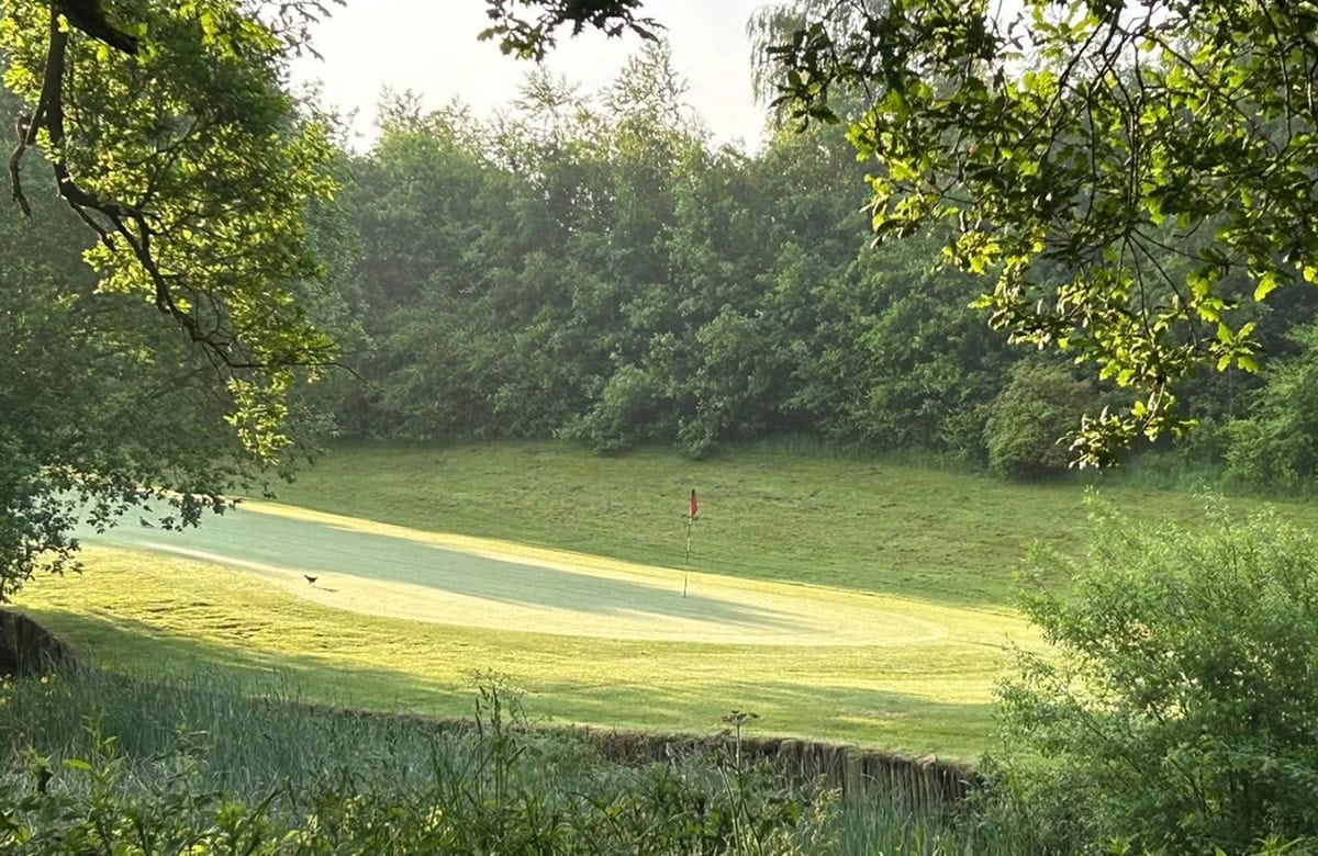 The downhill approach to the green, with a pond on its left, can either be played with a full shot to the pin or a pitch and run down to the long, narrow, level putting surface. Heavy rough is situated down the right of the green.